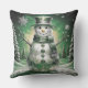 Beautiful Green Snowman Snowflakes Holiday Throw Pillow