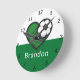 Green Soccer Love Kids Players Name & Ball Striped Round Clock