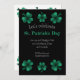 Green Sparkle Shamrock St. Patrick's Day Black Invitation