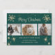 Custom green photo Christmas cards featuring snowflakes and stars on the front and sparkly snowflakes at the back. Easily personalise these green photo Christmas cards with your images, text and a family name.