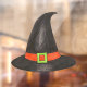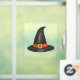 Window cling features an original marker illustration of a spooky witch costume hat on a green background. Perfect for Halloween parties or decorating for the season.