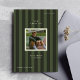 Graduation photo announcement card with a sporty, green striped background, ideal for athletes.