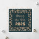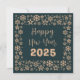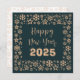 Square wish card Happy New Year written in English in gold font with a lot of golden stars on a green background - editable text and background