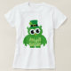 Green St Patricks Day irish owl cartoon tee shirts. Funny bird design with Irish hat and lucky shamrock. Cute St Pattys Day party clothing for men women and kids.