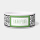 Green Stitched Label Design Damask Dog Bowl