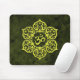 A light green Om design sits inside of a stylised lotus flower. A shadow falls onto the stone textured background making the flower appear to float just above the surface of the pattern. Six elegant leaves reach out from the centre of the design to create a beautiful symmetrical pattern. This stylish yoga design is a striking representation of this spiritual symbol.