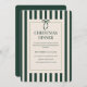 Host your Christmas dinner in style with this Green Stripe Christmas Dinner Invitation. Designed with classic forest green stripes and a simple bow illustration, this card blends traditional holiday charm with a clean, modern layout.