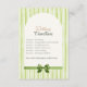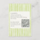 Wedding timeline cards in fresh green stripes detail your event schedule—cocktails, dinner/toasts, cake cutting, dancing—with dress code, perfect as save the date enclosure or invitation insert. Back includes customizable hotel block info and QR code for RSVP/travel details. Easily coordinate with products from our Green Stripes Wedding Suite.
