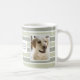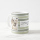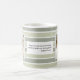 Personalise this striped mug with two of your favourite photos of your pets, friends, kids, and a meaningful quote or name. Soft green duotone stripes against a white background.