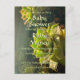 Several green succulents in the sun background. The text is white with golden yellow outline and a lighter green shadow as a fully customisable invitation to a baby shower for a mother to be.