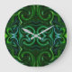 Green Swirly Spotted Abstract Fine Art Glass Look Large Clock