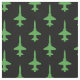 A simple repeat pattern of green T-38s on black make this fabric a great choice for party shirts, bandanas, quilts, and other fighter jet squadron sewing projects.
