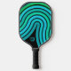 Green Teal Aqua Blue Retro Swirl with Initial Pickleball Paddle
