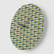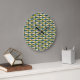 A stylish Round Wall Clock, with a decorative 'tribal' pattern in Green and Teal, outlined in Black, on a Cream Background. Part of the Posh & Painterly "Jungle Drums" collection.