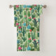 Green Teal Blooming Cacti Pattern Bath Towel Set