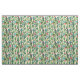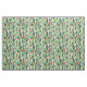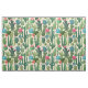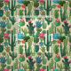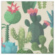 This is a pattern of decorative green and teal flowering cacti on a light beige background.