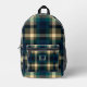 Green Teal Chequered Pattern Printed Backpack