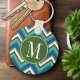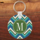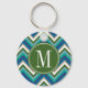 Green & Teal Chevron Pattern with Monogram Key Ring