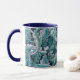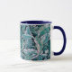 This is a pattern of green and teal acanthus leaves on a dark blue background, made based on William Morris (1834-1896).