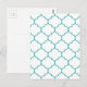 green,teal,white,morrocan,quatrefoil,pattern,trend postcard