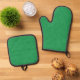 Green textured surface with swirling pattern oven mitt & pot holder set