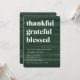 Bring elegance and warmth to your holiday celebration with this Green Thankful Grateful Blessed Thanksgiving Dinner Invitation. Featuring a deep green textured background with bold white typography, this modern design captures the spirit of gratitude and togetherness — making it perfect for Thanksgiving dinners, Friendsgiving gatherings, or autumn parties.