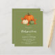 A sage green, olive green background. Decorated with retro looking pumpkins. With the text: Thanksgiving Dinner written with a modern hand lettered style script. Personalise and add the details.