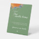 It is sturdy than I expected. Was worried about the material being flimsy but it is not. It is printed on some sort of plastic material. It should serve well at our wedding as long as wind isn’t too bad. Otherwise we will put some paper weights behind it and should be fine.