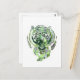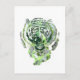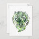decorative artwork of a big tiger head in surreal green colours on a postcard