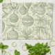 Green Toile Christmas Bells & Ornaments Pattern 2 Tea Towel