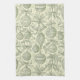 A vintage-style green toile seamless pattern kitchen towel featuring intricately illustrated Christmas bells, holly branches, pine sprigs, ribbons, and ornaments on a soft cream background. The elegant monochrome linework evokes a classic holiday charm, reminiscent of Victorian Christmas decor. This pattern blends timeless elegance with nostalgic seasonal spirit.