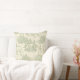 A vintage-style seamless pattern throw pillow depicting a peaceful winter village scene in soft green. Inspired by classic toile designs, it captures snowy cottages, pine trees, sleigh rides, and timeless holiday charm. Ideal for Christmas themes, nostalgic, and elegant vintage countryside aesthetic.