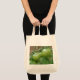 This beautiful tote bag features a photograph of a bunch of unripe green cherry tomatoes growing on a tomato plant in a suburban garden. The photograph was taken using macro photography for a detailed result. The design is shown on an organic grocery tote bag, but is also available on other styles and colours of bags.
