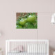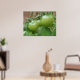 This beautiful print features a photograph of a bunch of unripe green cherry tomatoes growing on a tomato plant in a suburban garden. The photograph was taken using macro photography for a detailed result.
