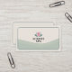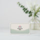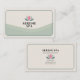 A simple business card design featuring a single stylized lotus flower in soft pastel pink and green tones, some pale green waves and a thin border of dark green, evoking a sense of tranquility and natural wellness.