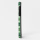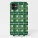 This phone case has a geometric design made from Ls in shades of green laid in different directions repeating across the design.