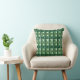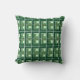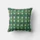 This thro pillow has a geometric design made from Ls in shades of green laid in different directions repeating across the design.