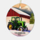 Green Tractor and Red Barn Ceramic Ornament
