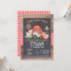 This boy's cute barnyard or farmyard birthday party invitation features a red barn, green tractor, pig, horse and a cow. The design consists of a chalkboard style frame and a red plaid and wood image background. This is a cute invitation and sweet way to invite your child's friends to his barnyard theme birthday party.