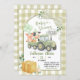 Green Tractor Gingham Coquette Farm Baby Shower Invitation