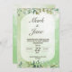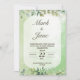 It is a wedding invitation with a watercolor design themed with fresh green tree leaves.