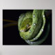 green tree snake emerald boa in the Bolivian rainforest strangler serpent of amazon rain forest at night on branch endangered reptile nocturnal animal treesnake black background copy space © and ® Bigstock® - All Rights Reserved.