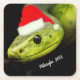 Green Tree Snake in Santa Hat Square Paper Coaster