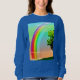 Sweatshirt in a green, watercolor tree, against a blue sky and a vividly coloured rainbow