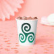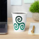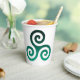 Green Triskele symbol. The Triskele or Triskelion symbol consists of three interlocked spirals or three arms as if it is moving from its centre. This Celtic symbol of movement or action represents the three worlds; the celestial, physical, and spiritual.
