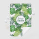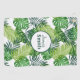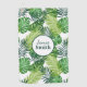 Colourful watercolor green tropical monstera, palm and fern leaves on a white background with monogram name design.