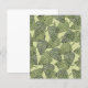 This stylish leaf pattern has simple illustration style images of tropical jungle leaves in shades of green on a lighter green background.