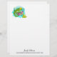 Letterhead with a cute illustration of a green tropical lizard surrounded by leaves and flowers. Personalise with your name and address or other text.