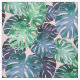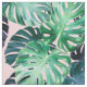 Colourful watercolor tropical tracery monstera leaves on a peach background.