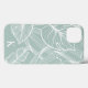 This iPhone case features a white tropical palm leaf pattern over a light green background. Personalise it with your initial, set in a bold, simple, modern font. A stylish, chic phone case — perfect for summer!